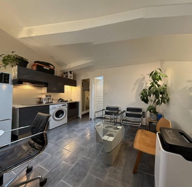 Appartement deux pièces avec terrasse privative et deux places de stationnement.